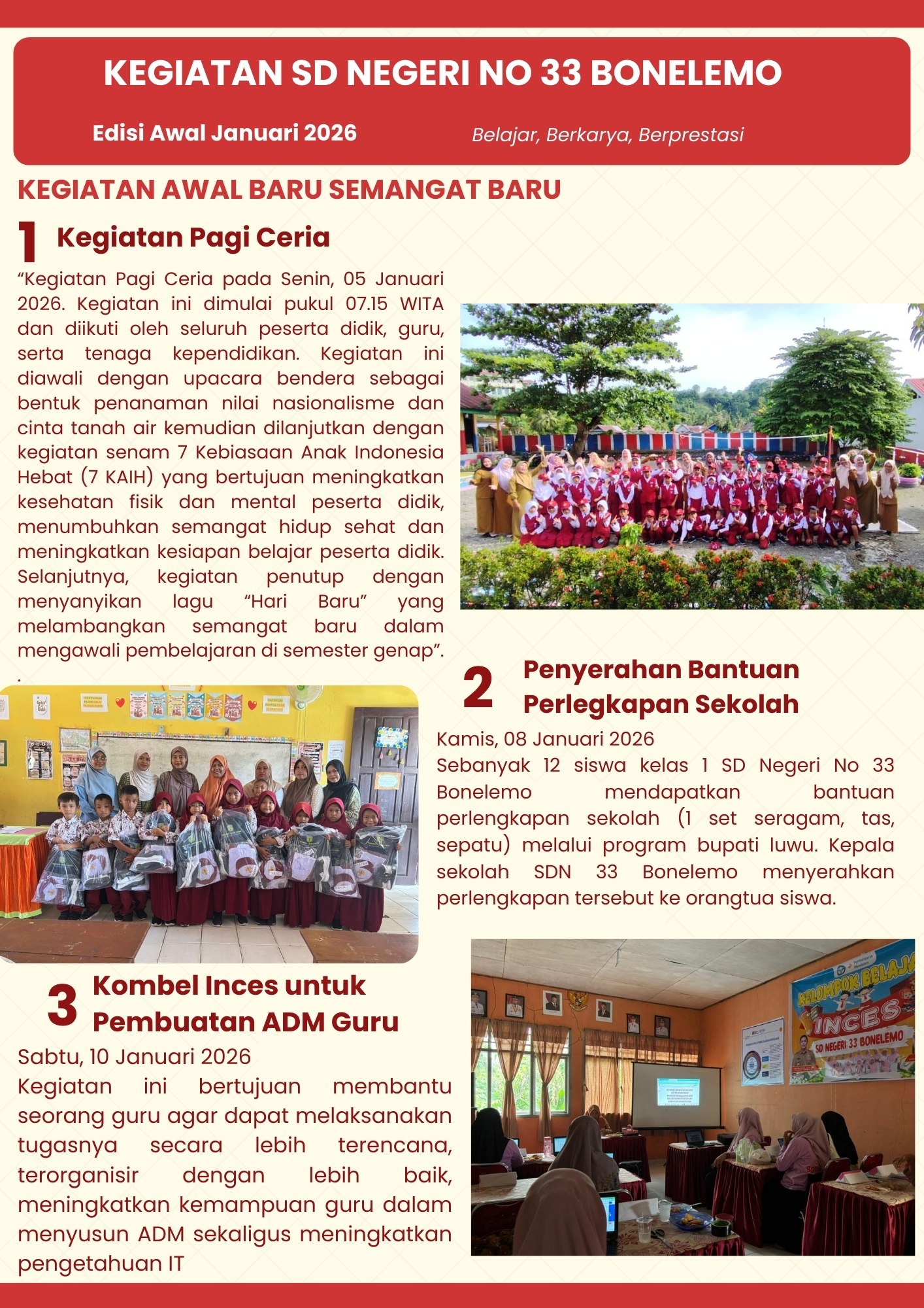 Assalamu'alaikum wr.wb.Puji syukur kepada Alloh SWT, Tuhan Yang Maha Esa yang telah memberikan rahmat dan anugerahNya sehingga website SDN 33 Bonelemo ini dapat terbit. Salah satu tujuan dari website ini adalah untuk men...
